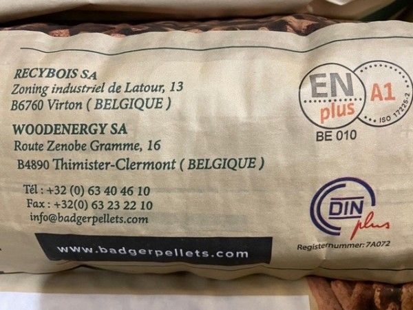Les pellets BADGER constituent sans nul doute les granulés de bois les plus connus sur le marché belge. Ils sont certifiés DIN plus et ENplusA1 ( Woodenergy SA, Belgique, BE 010 )